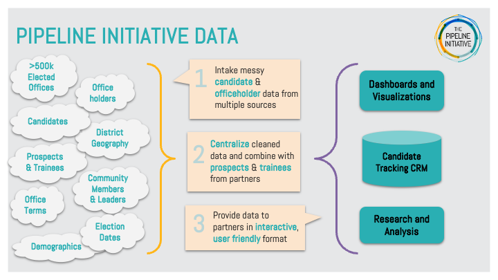 Pipeline data and tools empower organizations’ work by allowing them to track their trainees and potential candidates, match their lists to identify what offices they can run for and when, and – again – collaborate with partners across the ecosystem in real time to recruit and support the best leaders.